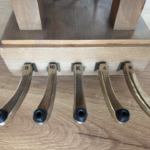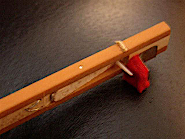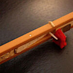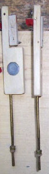 Springere af Wittmayer (ca 1950-80). Krop af træ med stort blylod. Længden er bestemt af en metalstang i bunden, der er forsynet med et par møtrikker for at øge vægten.