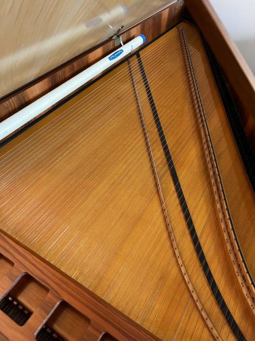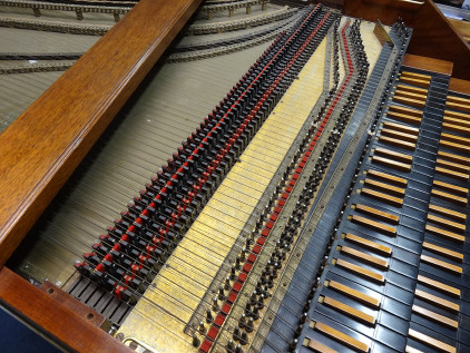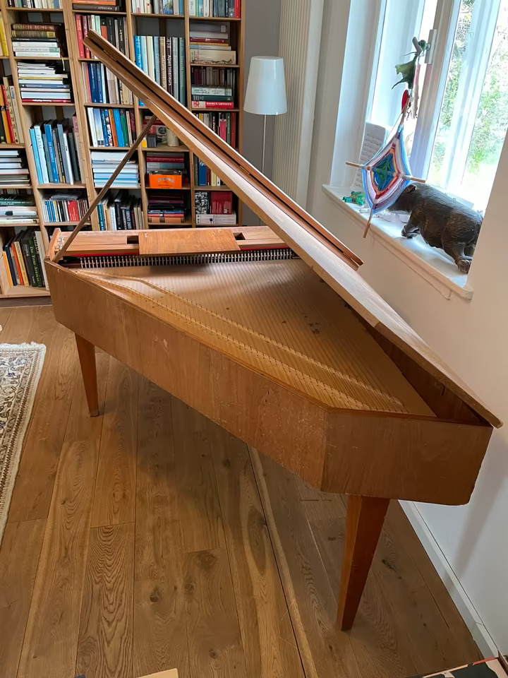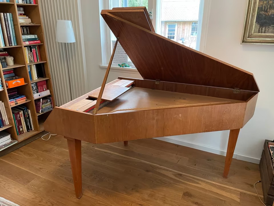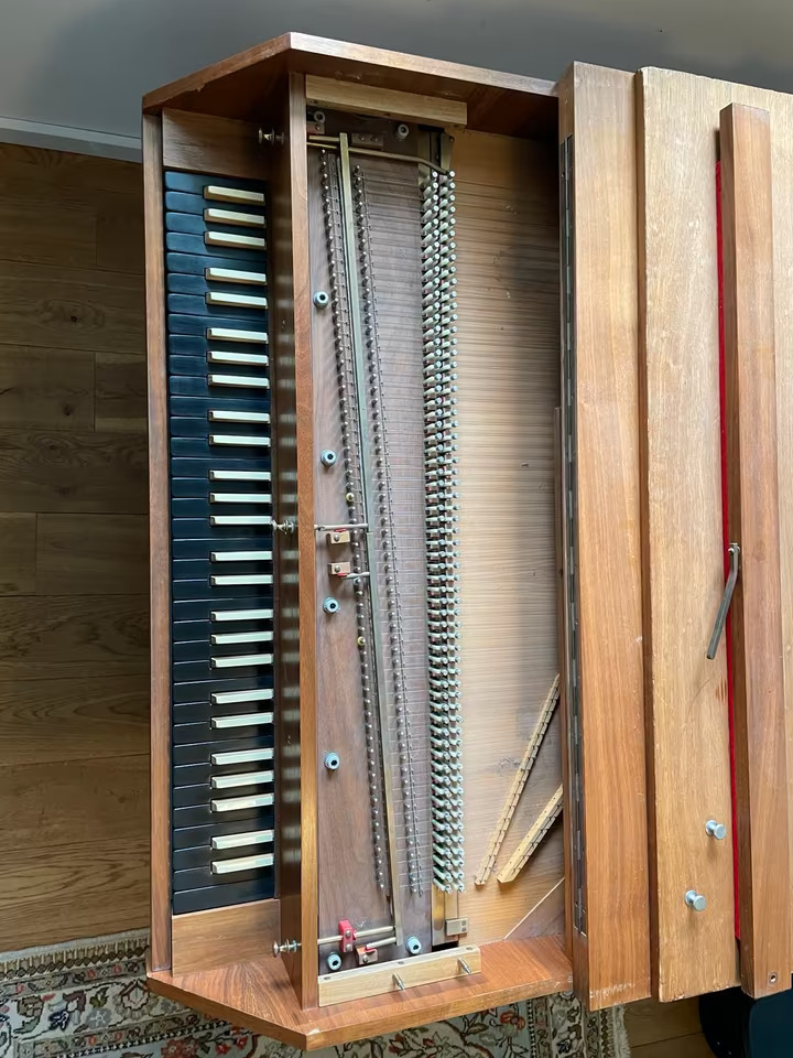 For at høre det moderne cembalos klangindeal og opleve dets anvendelse i musikken, kan jeg anbefale János Sebestyén’s side (åbner i ny fane) med optagelser af en række europæiske (og to amerikanske) cembalobyggeres instrumenter. Klangidealet er langt fra det historiske instrument, og man kan undre sig over hvorfor byggere, musikere og lyttere valgte at gå i den retning med et klangideal præget af mangel på grundtone i bassen og med mange uhamoniske metalklange i det meste af omfanget – måske var det drømmen om det grandiose, det store, de mange registre, variationen i klangen… I hvert fald må drømmen siges at være brast, og det moderne cembalo er lagt i graven – til fordel for enklere instrumenter, baseret på historiske principper.