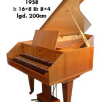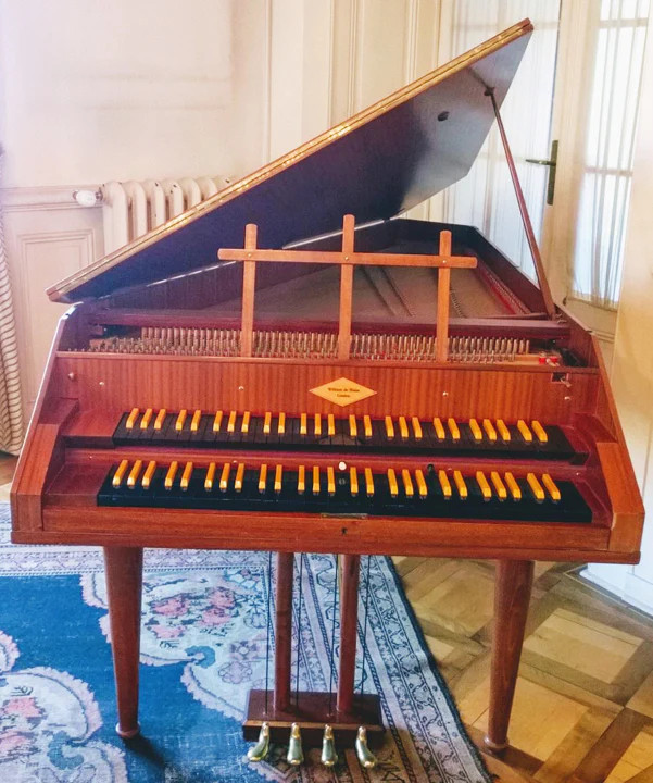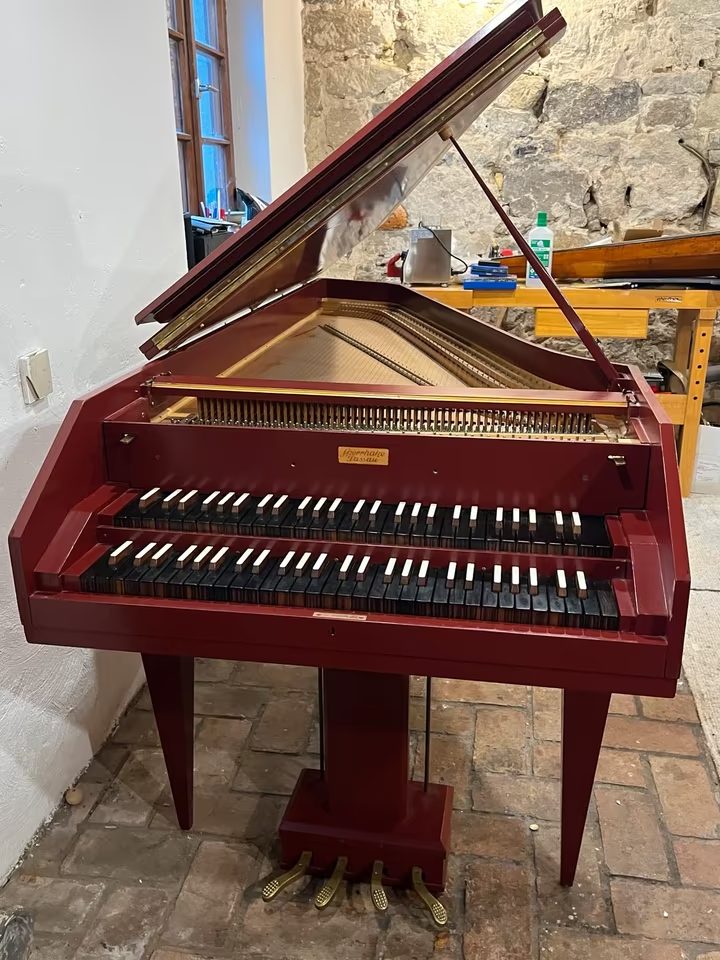 Firmaet Neupert byggede og udviklede en lang række moderne tyske cembaloer, som fik navne efter musikhistoriske koryfæer: Telemann, Couperin, Vivaldi, Cristofori og topmodellen hed selvfølgelig Bach. Selvom Neupert skiftede linje til historisk baserede cembaloer servicerer og bygger de stadig moderne cembaloer som deres Couperin og Bach modeller. Couperin modellen er pudsig ved at have omfang C-f”’ – et omfang, der mangler flere toner i bassen for at kunne spille Couperin’s cembalomusik… Bach modellen udmærker sig ved at have den forkætrede Bach-disposition med 4′ på øverste manual. I: 16+8 (lut på 16), II: 8+4 (lut på 8) samt kobling. Modellen i 1956 (og sikkert også andre år) havde en “piano” funktion mærket “8p” på hver af 8′, som bevirkede at registrene blev trukket lidt væk fra strengene, med svagere klang til følge (i praksis er det utrolig svært at regulere dette med læderplektre). Det er et stort instrument: 260cm langt, 109cm bredt og med en kampvægt på 170kg!